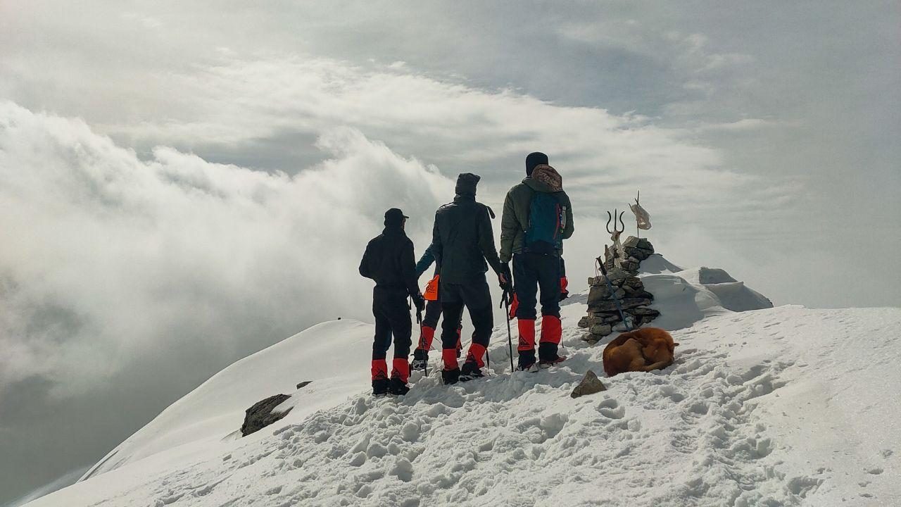 Continue along snow-covered ridges with breaks every 15 minutes; rest at Jhandi Dhar after about two hours.